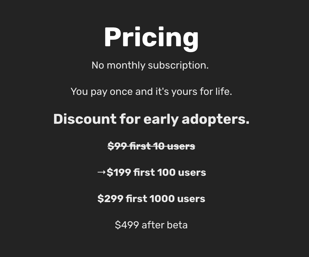Simply connect your Stripe account and link your Stripe products. You can then create tiered early-bird discounts.