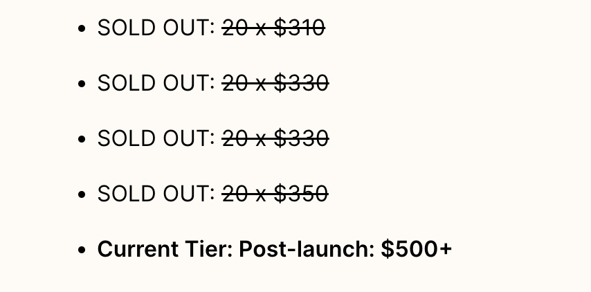 Create tiered early-bird discounts to encourage early-adopters and build sales momentum.